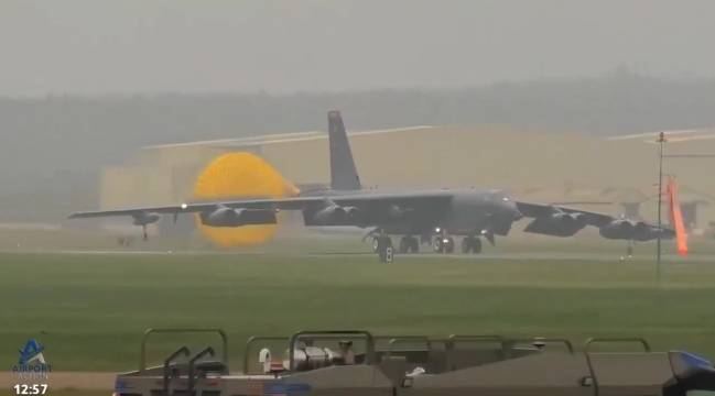 美军3架B52轰炸机降落英国
