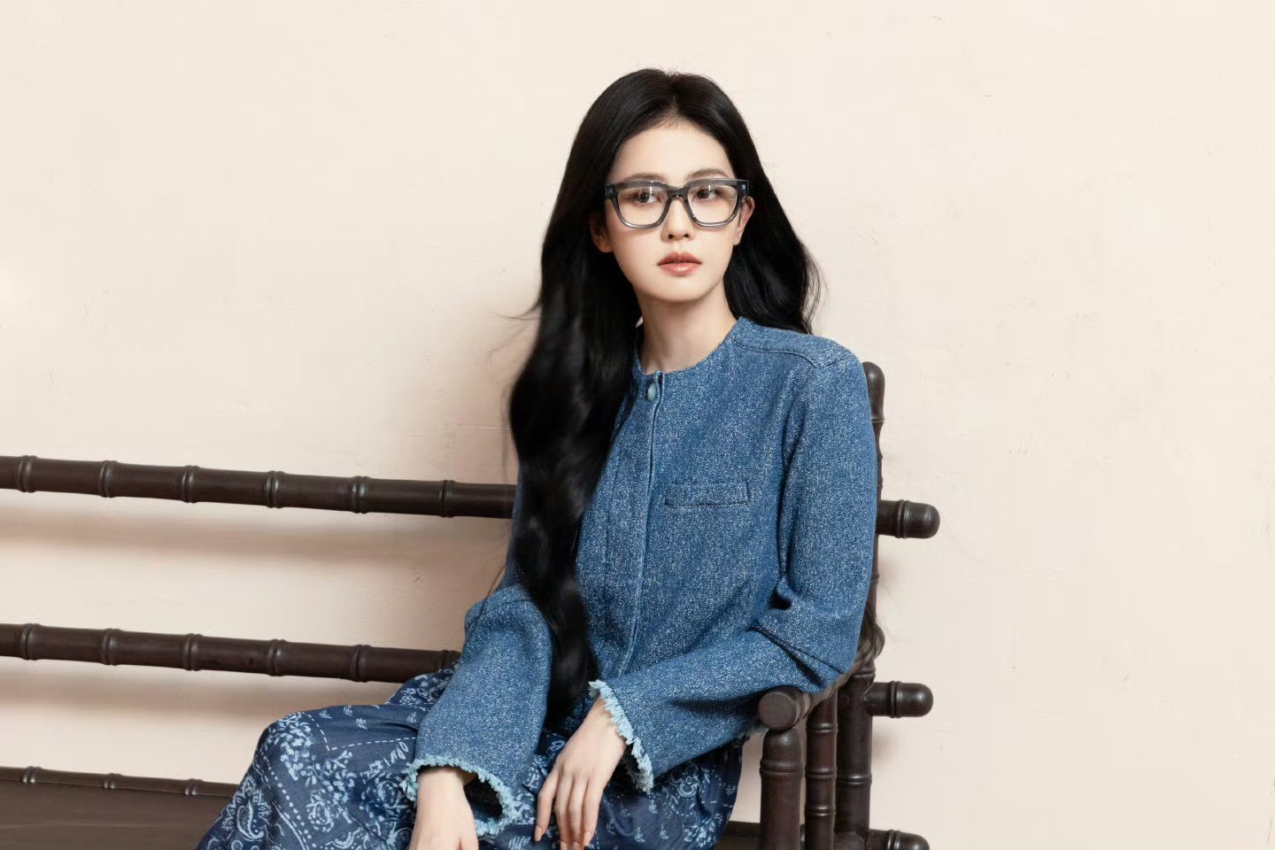 米白西装的肩线做了微落处理,没有传统西装的紧绷感,却依然保持利落轮廓;印花衬衫的衣长刚好盖住胯部,宽松落肩设计让手臂活动自如,哪怕抬手或倚坐,都透着 “衣服适应身体” 的自在...
