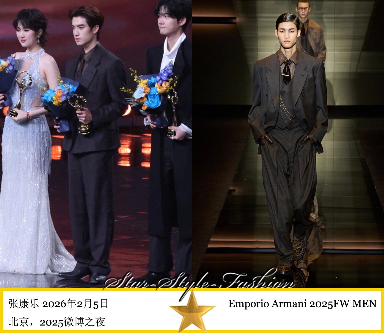 张康乐身着emporio armani2025秋冬男士系列深棕色套装亮相