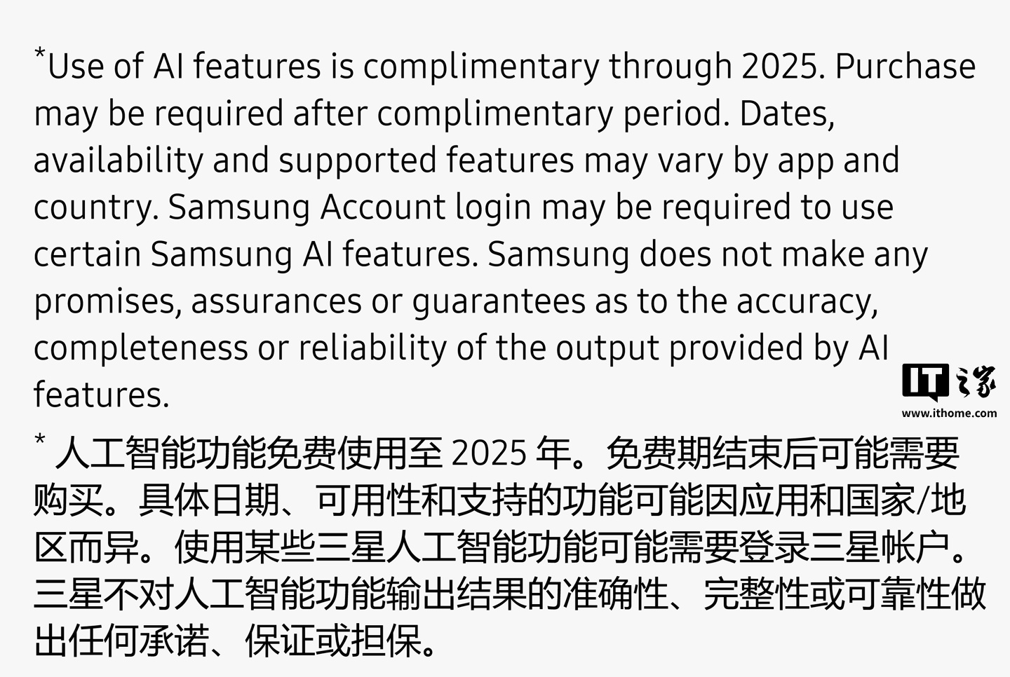 三星 Galaxy AI 海外官网此前条款为“AI 功能免费使用期截至 2025 年底”,而最新修改后条款为“三星提供的 Galaxy AI 基本功能免费”...