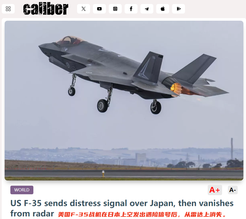 2026年1月16日,有少数几家媒体爆料:美国空军驻日本三泽基地的一架F-35A战斗机在日本上空飞行时突然发出“7700”的紧急代码,随后便从雷达屏幕上悄然消失、踪迹全无...
