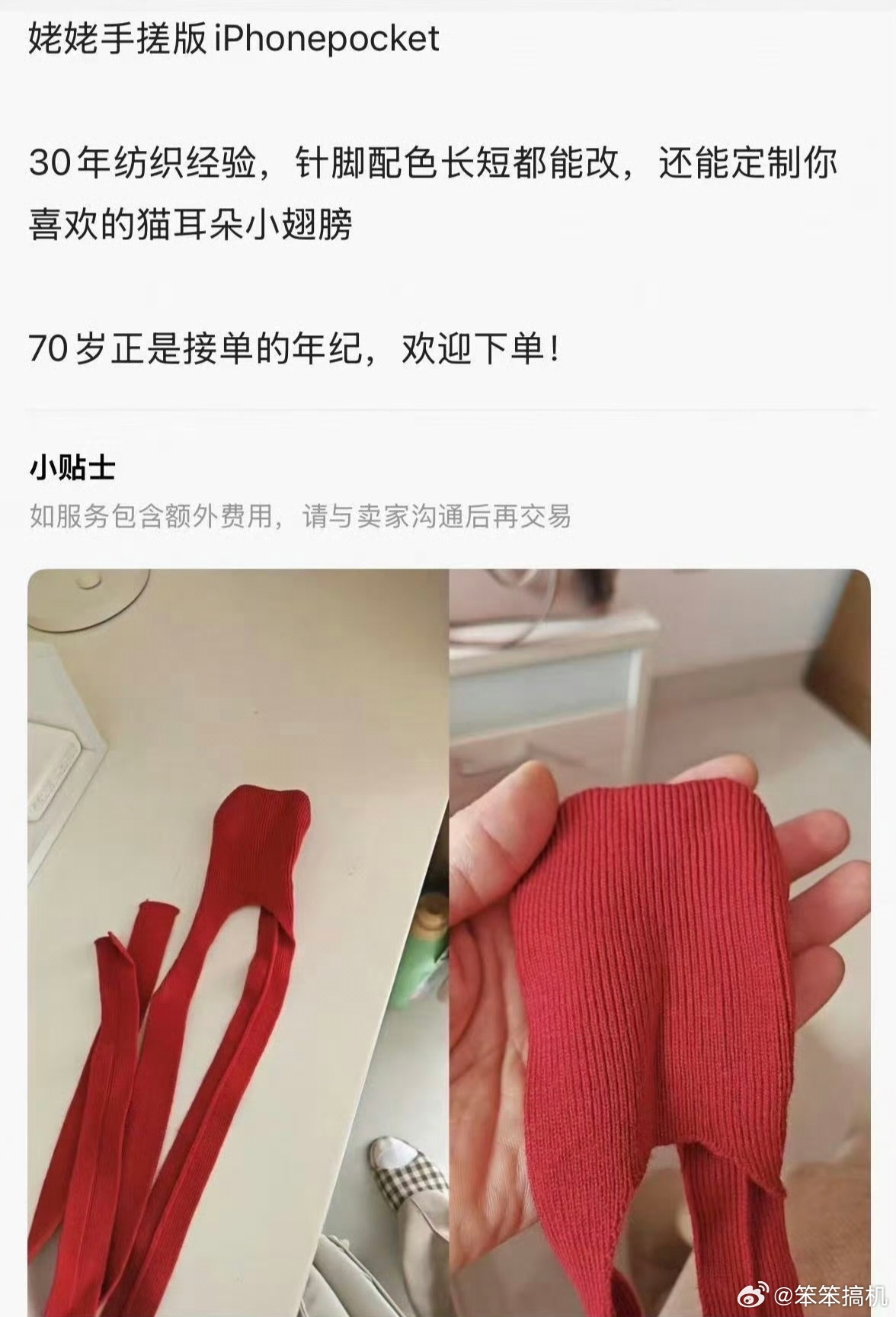 网友用毛线袜自制iPhone口袋,称无需高价购买苹果原装