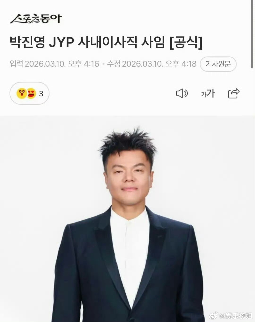 JYP从JYP辞职了?朴振英宣布辞去董事职务,三大社创始人均已退出核心管理层