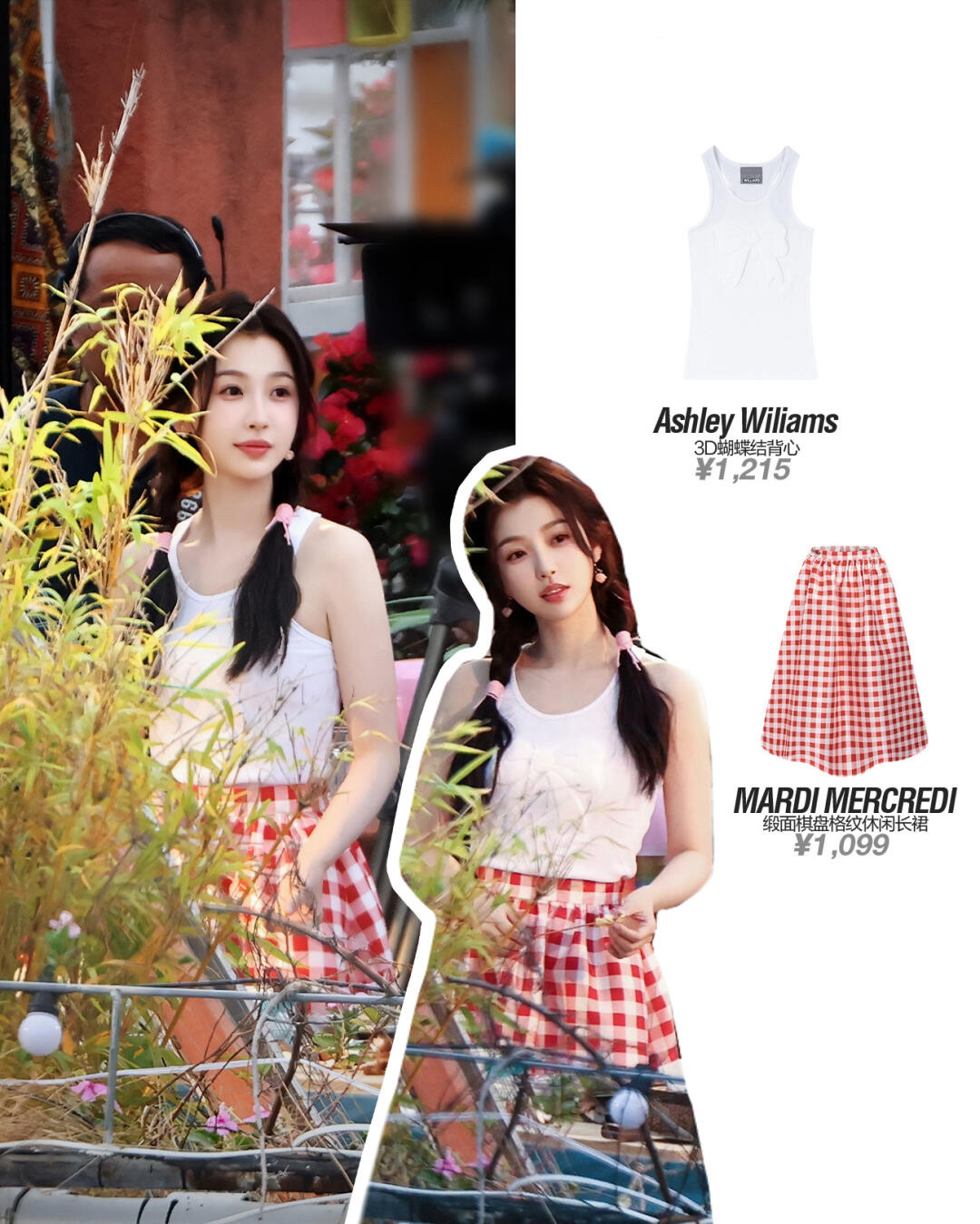 虞书欣私服 休闲可爱穿搭 上衣:Ashley Wiliams 半身裙:MARDI MERCRED