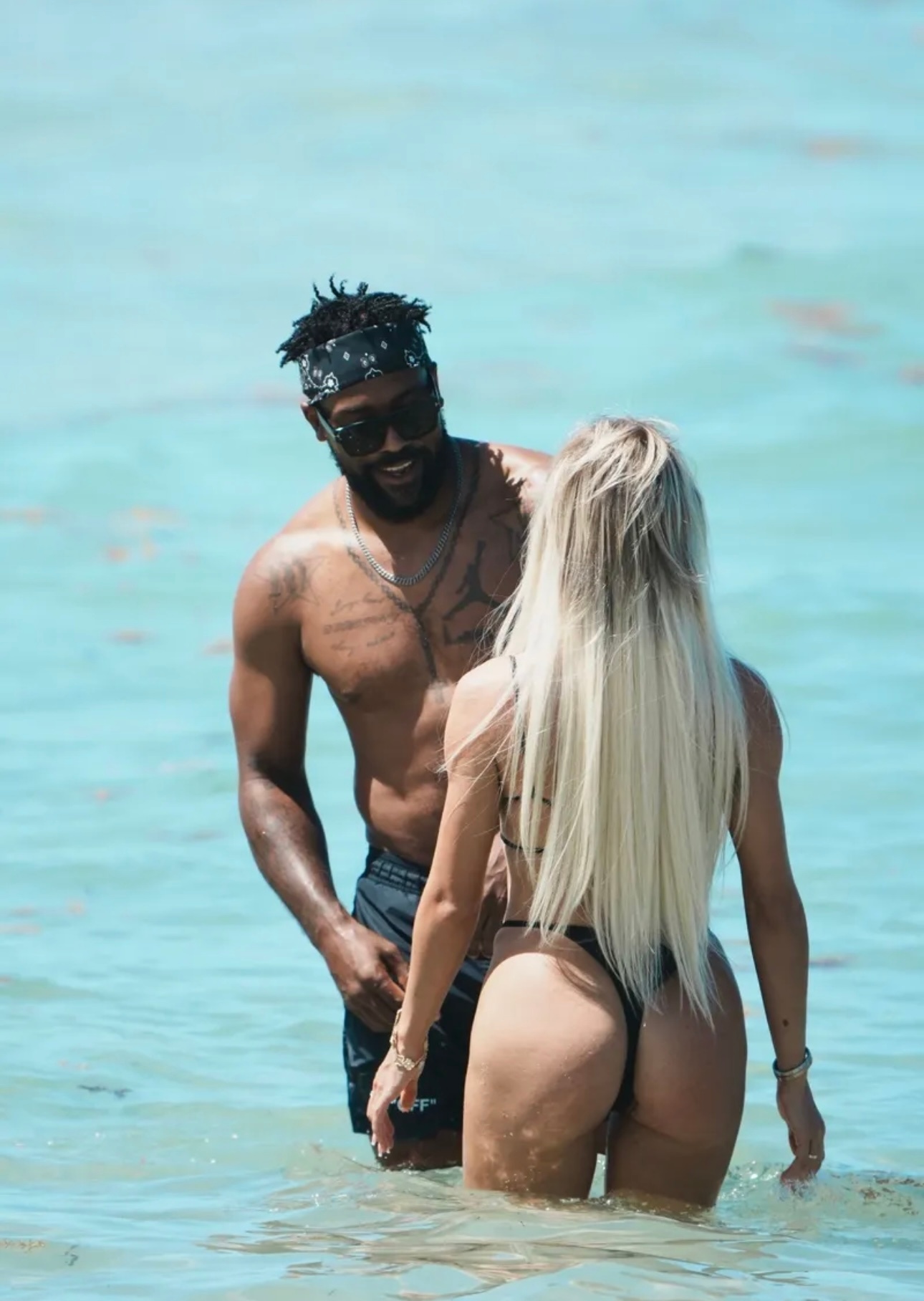 马库斯-乔丹和新女友Ashley Stevenson在迈阿密的海滩度假