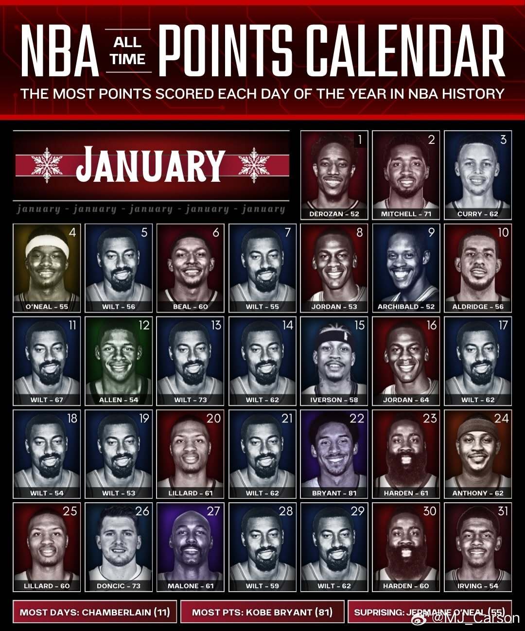 NBA 分数日历,细数365天每一天得分最高的球员