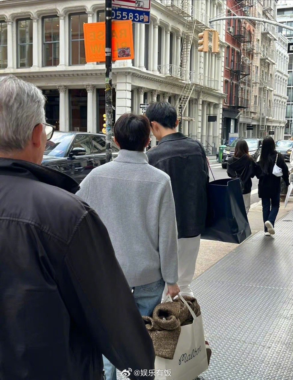 网友纽约soho偶遇王源逛街,好可爱好帅气的背影