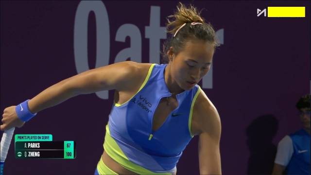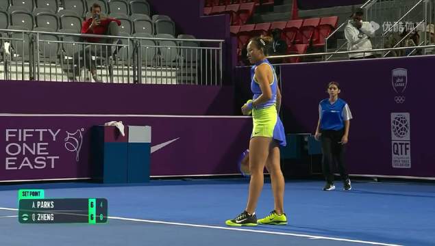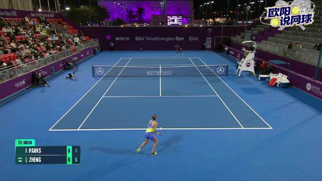 郑钦文7-6拿下第一盘,盘末偷鸡成功
