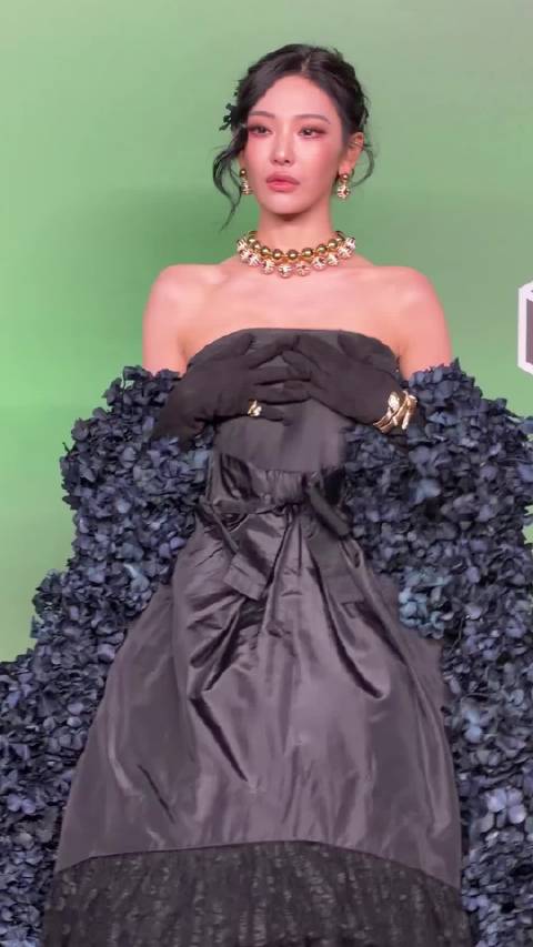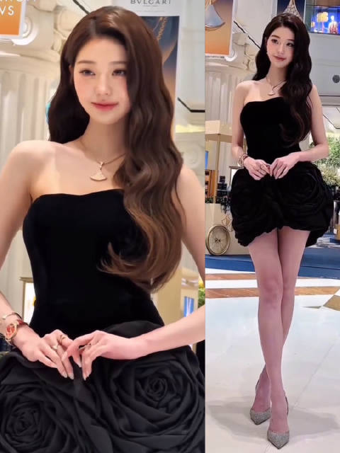 张元英首尔活动穿黑色抹胸裙配BVLGARI珠宝亮相
