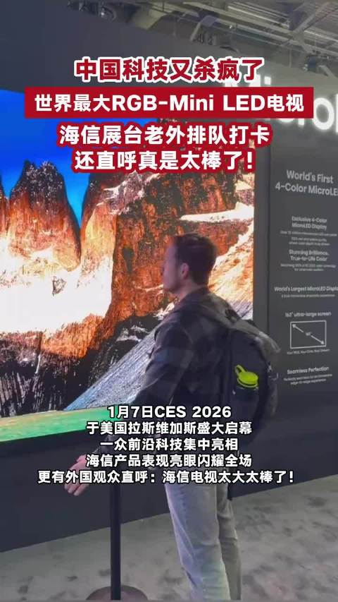 世界最大RGB-Mini LED电视亮相CES,海信展台老外排队打卡 ,还直呼真是太棒了!