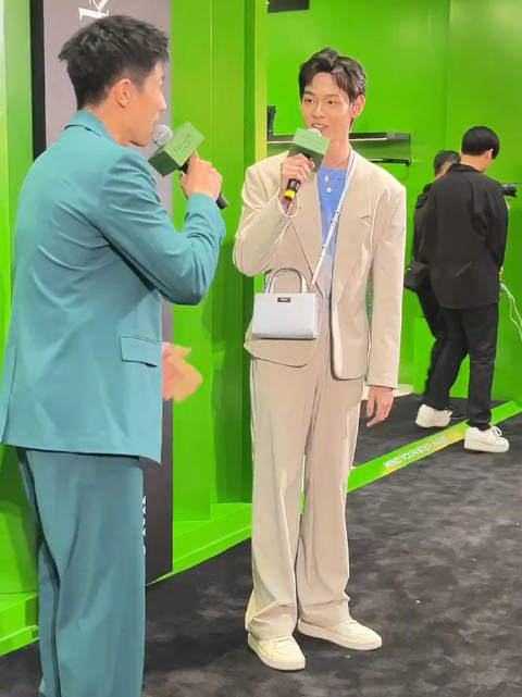活动,一身浅色套装的他清爽如风……