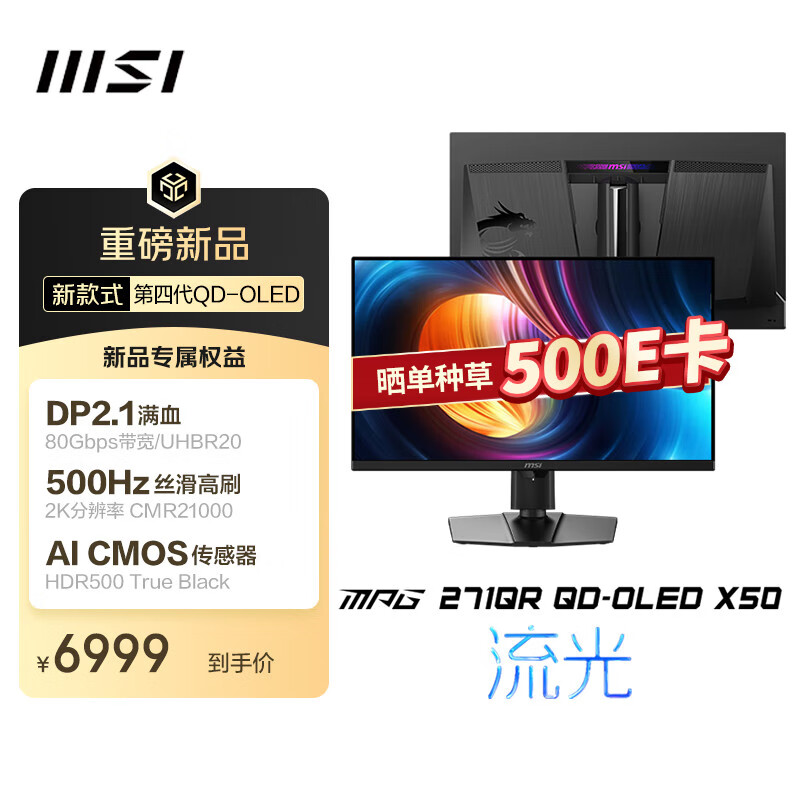 2K 500Hz,6999 元微星 MPG 271QR QD-OLED X50 27 英寸显示器开启预约
