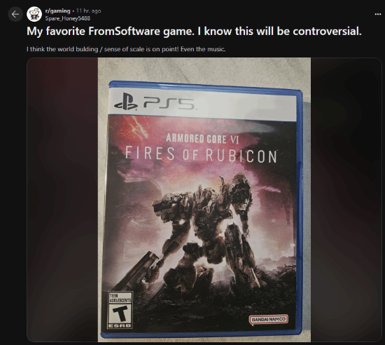 玩家称最爱FS社的《装甲核心6》担心引发争议 网友暖心宽慰