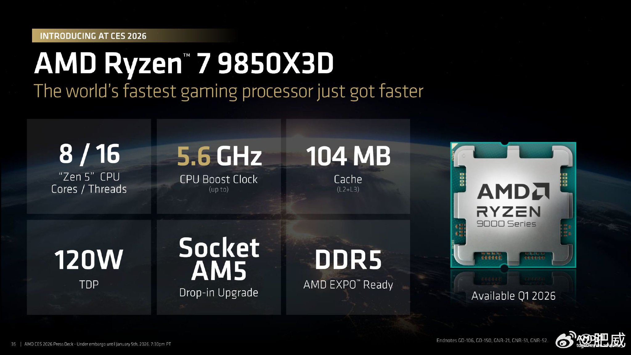 CES 2026:地表最强再升级,AMD发布锐龙7 9850X3D处理器