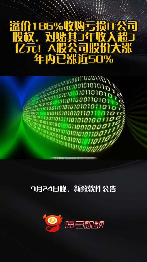 溢价186%收购亏损IT公司股权,对赌其3年收入超3亿元!A股公司股价大涨,年内已涨近50%