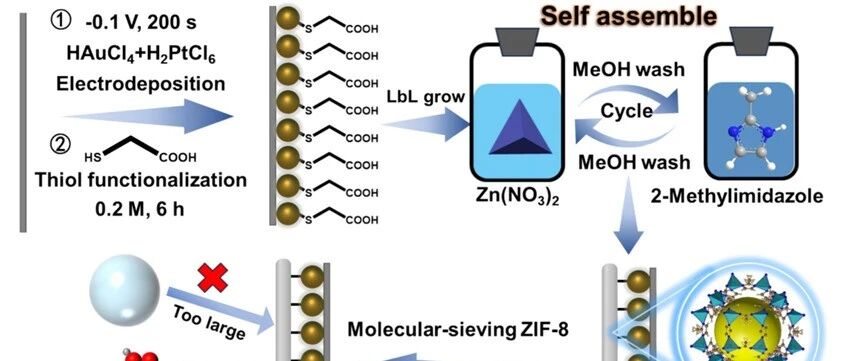 J.】ZIF-8分子筛膜修饰AuPt纳米合金实现癌细胞中H2O2的高选择性电化学检测
