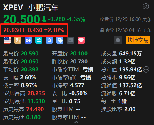 美股异动丨小鹏汽车盘前涨超2% 新款小鹏P7+即将全球36国发布