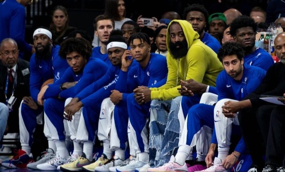76人队本赛季首个主场,126-98大胜开拓者。哈登依旧没有上场,但76人队打得更加整体团结了。哈登在场面穿着一件黄色连帽卫衣,不得不说穿黄色衣服真显黑,你看同样是黑色皮肤,穿黄色衣服的哈登,明显更黑一点...