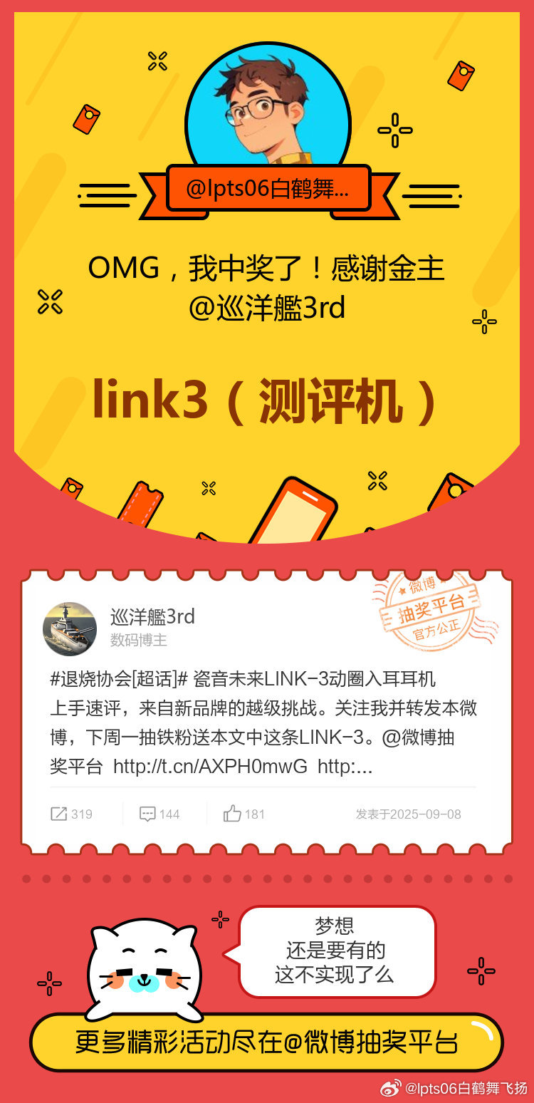 微博抽奖活动中的link3入耳式耳机收到,感谢@巡洋艦3rd 的奖品