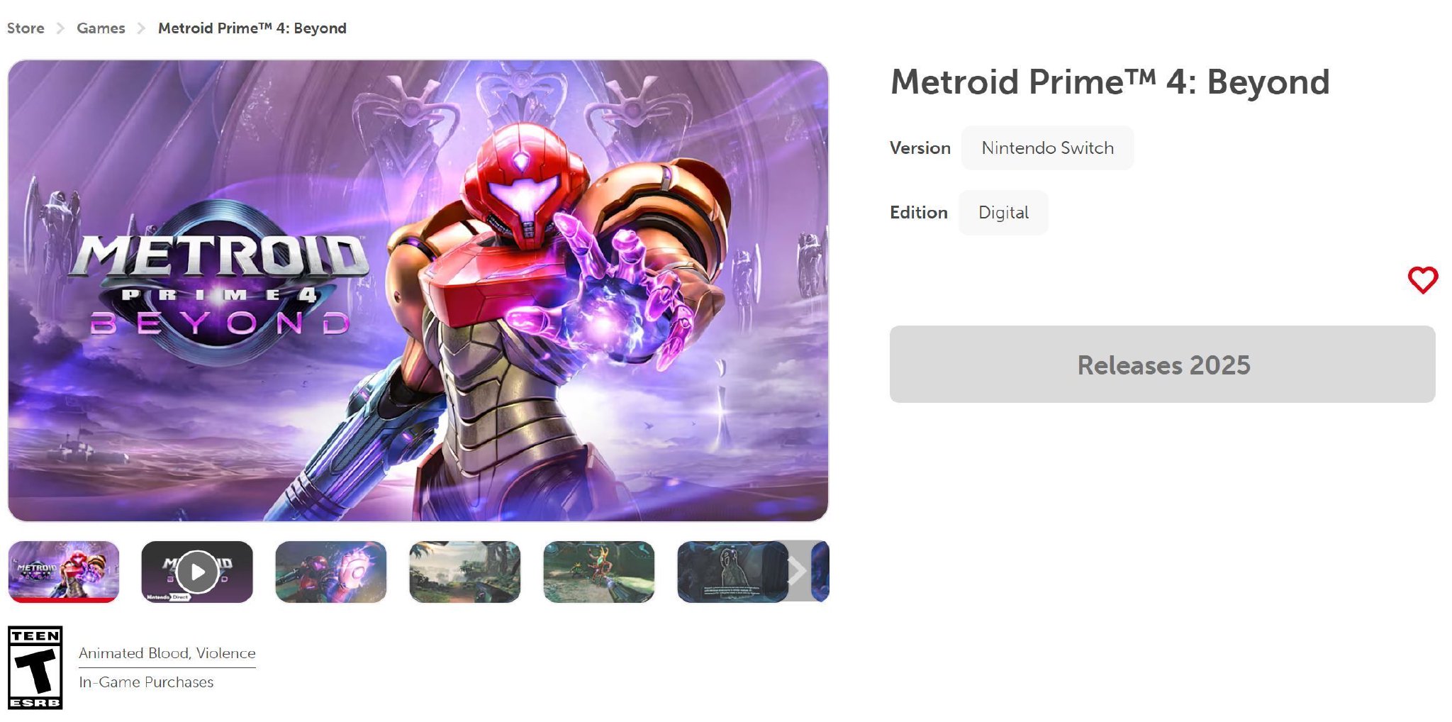 密特罗德究极4获ESRB评级T级,2025年登陆Switch2