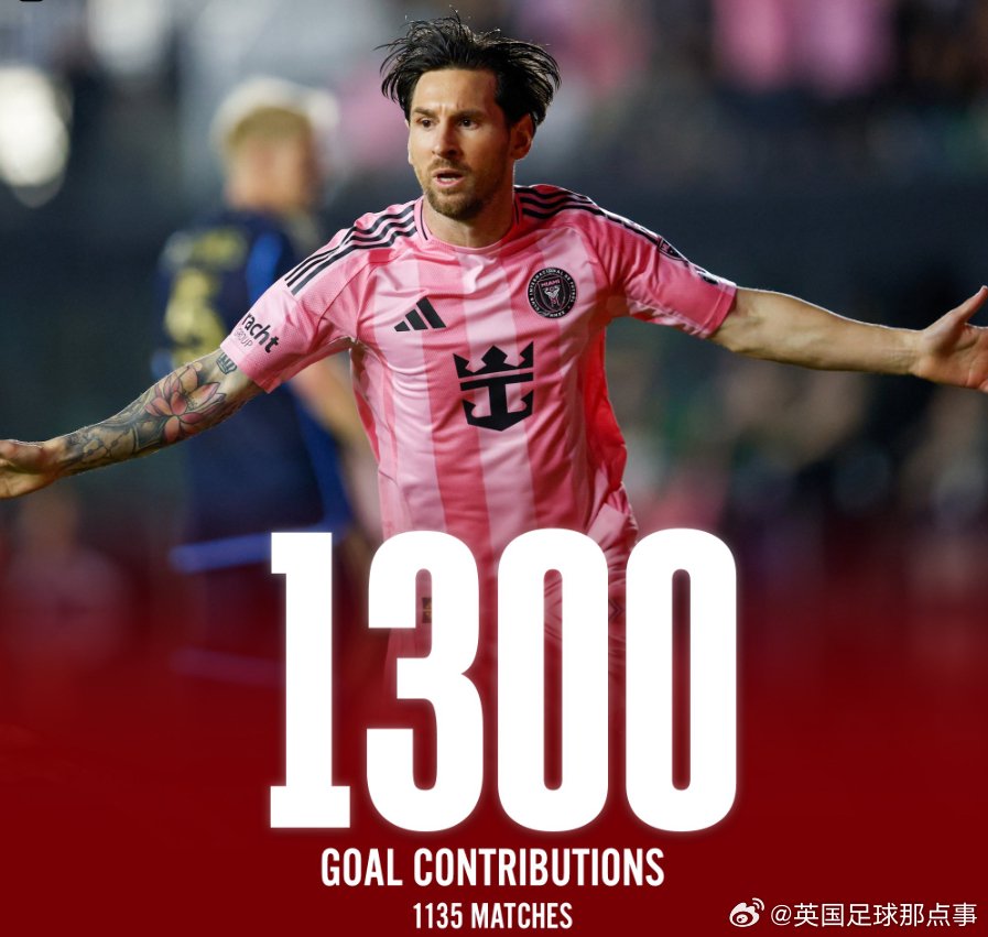 梅西职业生涯参与1300球,美职联1球3助攻助迈阿密国际4比0胜
