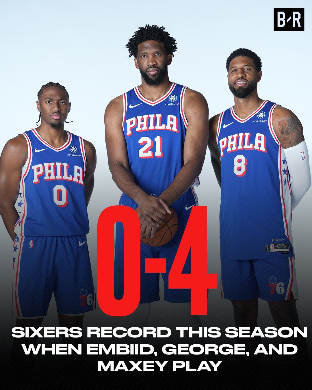 76人阵容完整时0胜4负,恩比德未穿袜子引关注