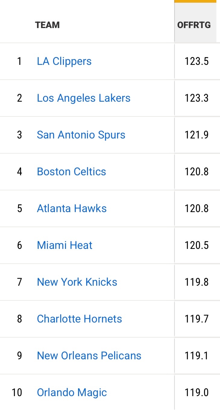 湖人近8战7胜1负,进攻效率、净效率、有效命中率均列联盟第二