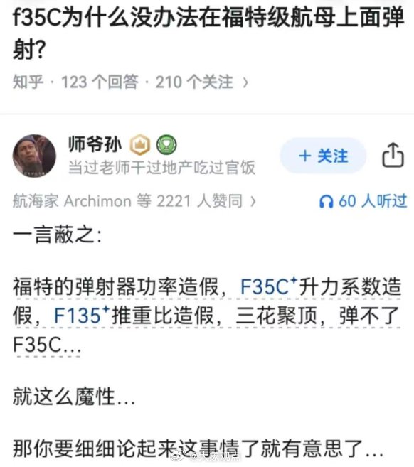 福特级航母弹射器功率与F-35C升力系数及发动机推重比存疑