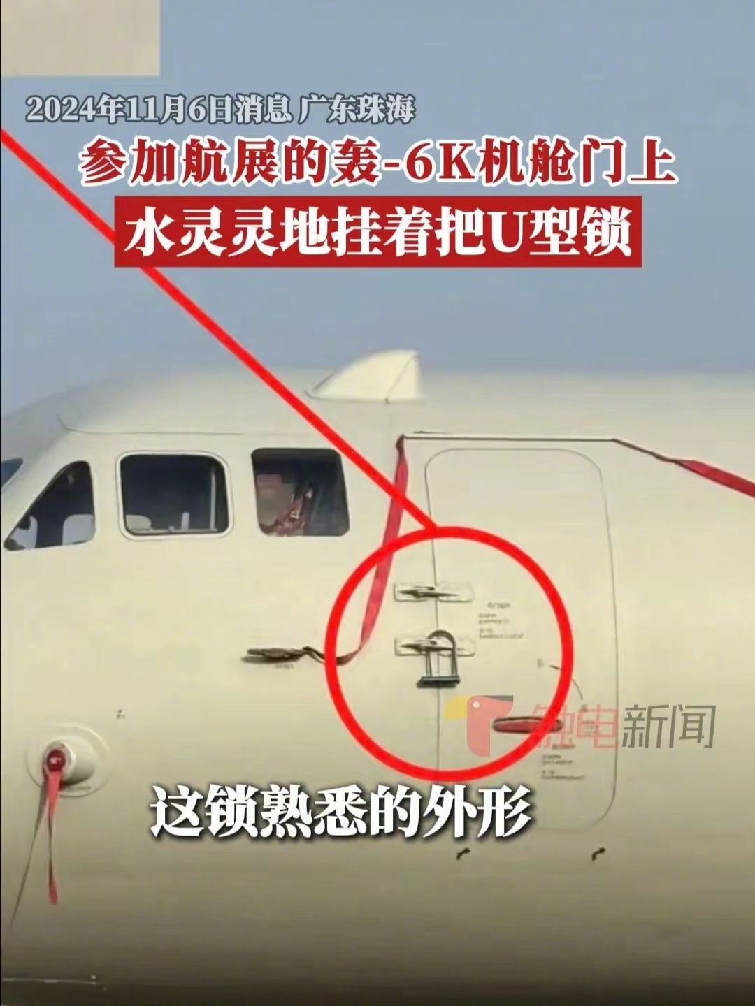 参展的轰6K水灵灵的挂着一个U型锁,高端的战机,只需要最简单的锁门方式