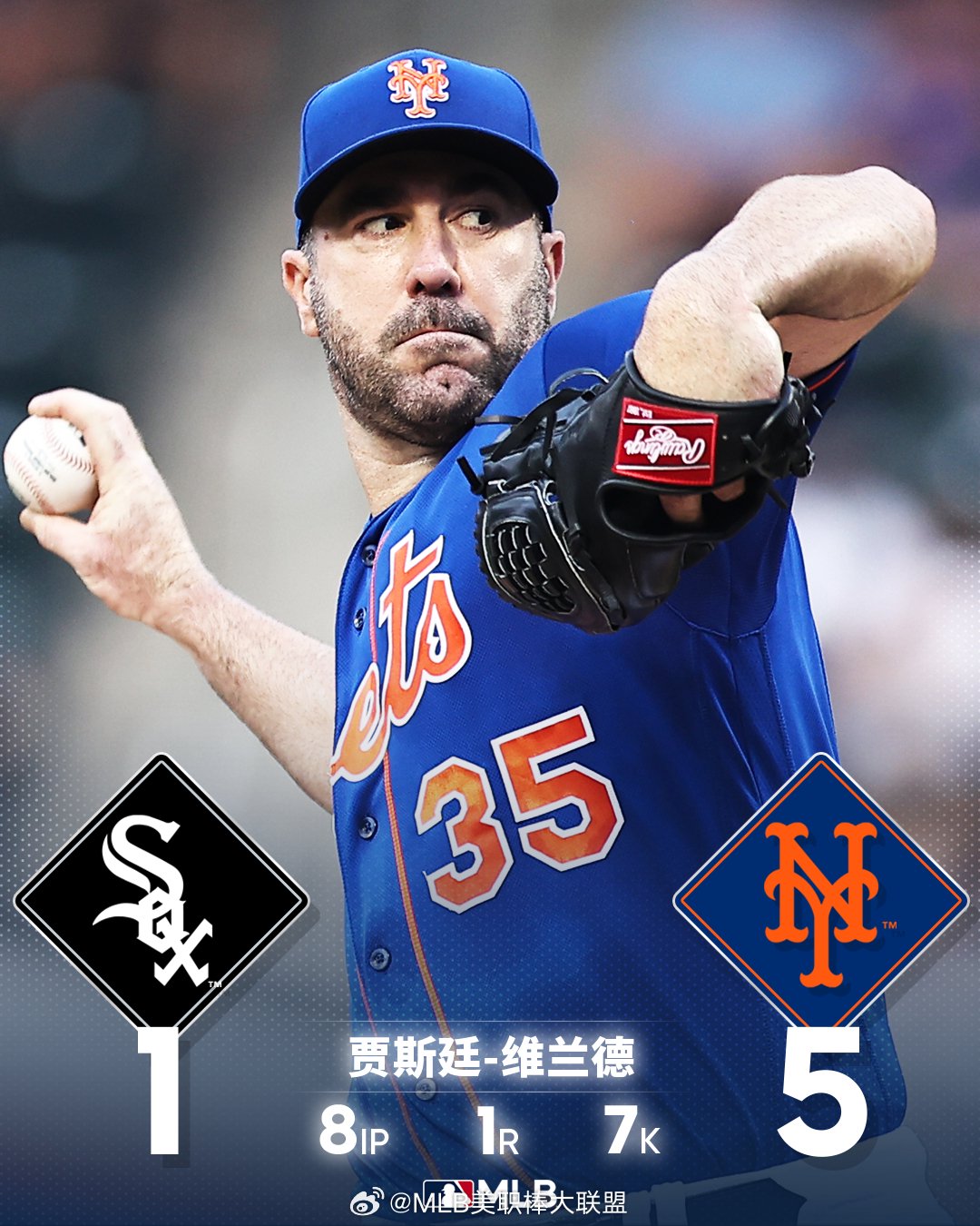 贾斯廷-维兰德(Justin Verlander)8局7K助大都会3连胜……