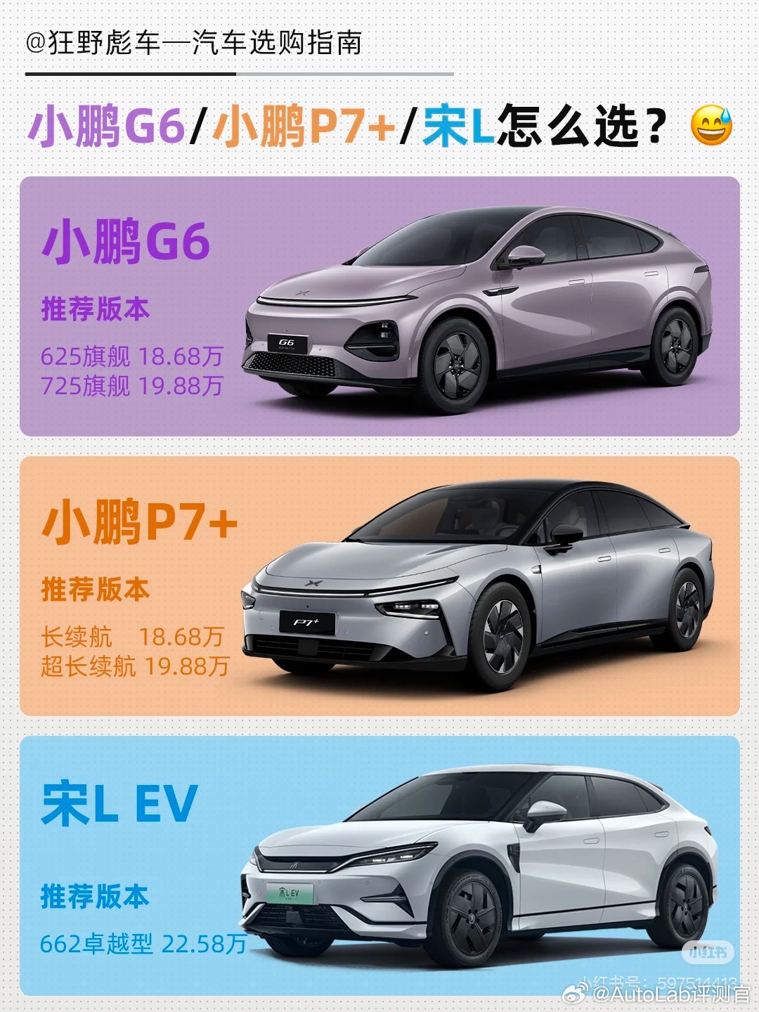 新款小鹏G6、小鹏P7➕、宋L EV这三款车放在一起,你会怎么选 图Via