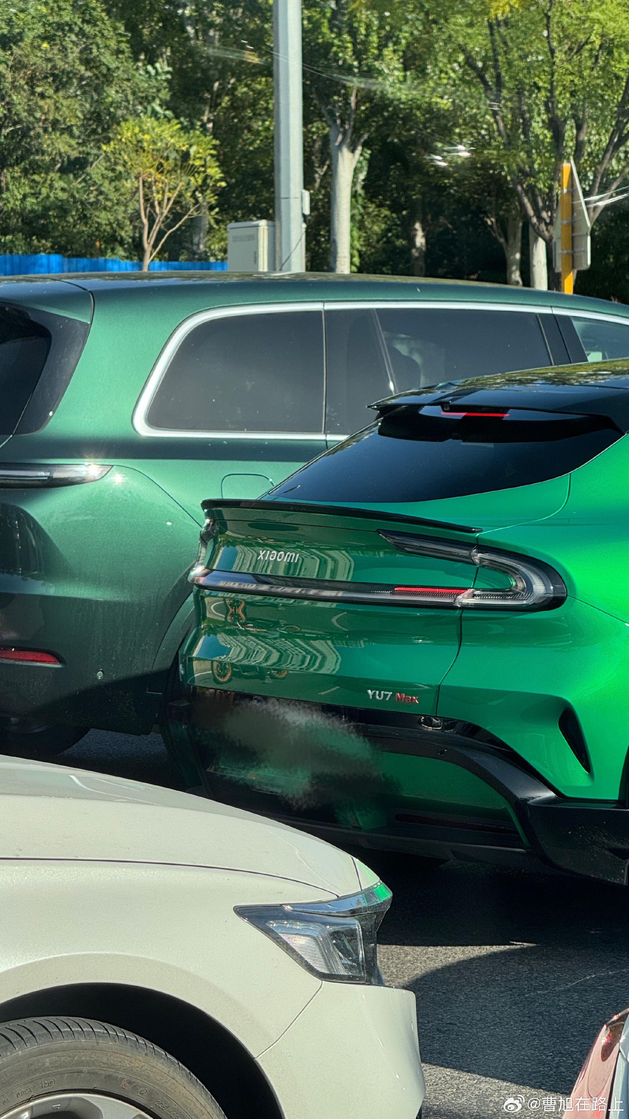 理想L9祖母绿与小米YU7阳绿同框对比