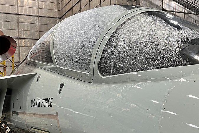 波音防务一架T7A教练机完成防雾、防霜和防冰地面测试。