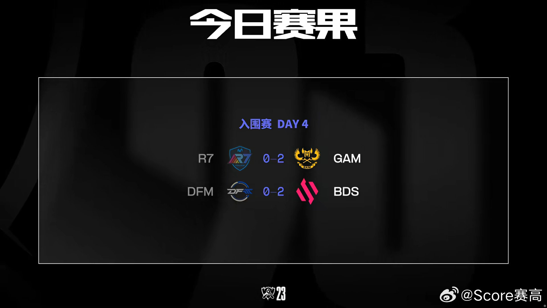 入围赛今日赛果及后续赛程预告 R7 0:2 GAM DFM 0:2 BDS……
