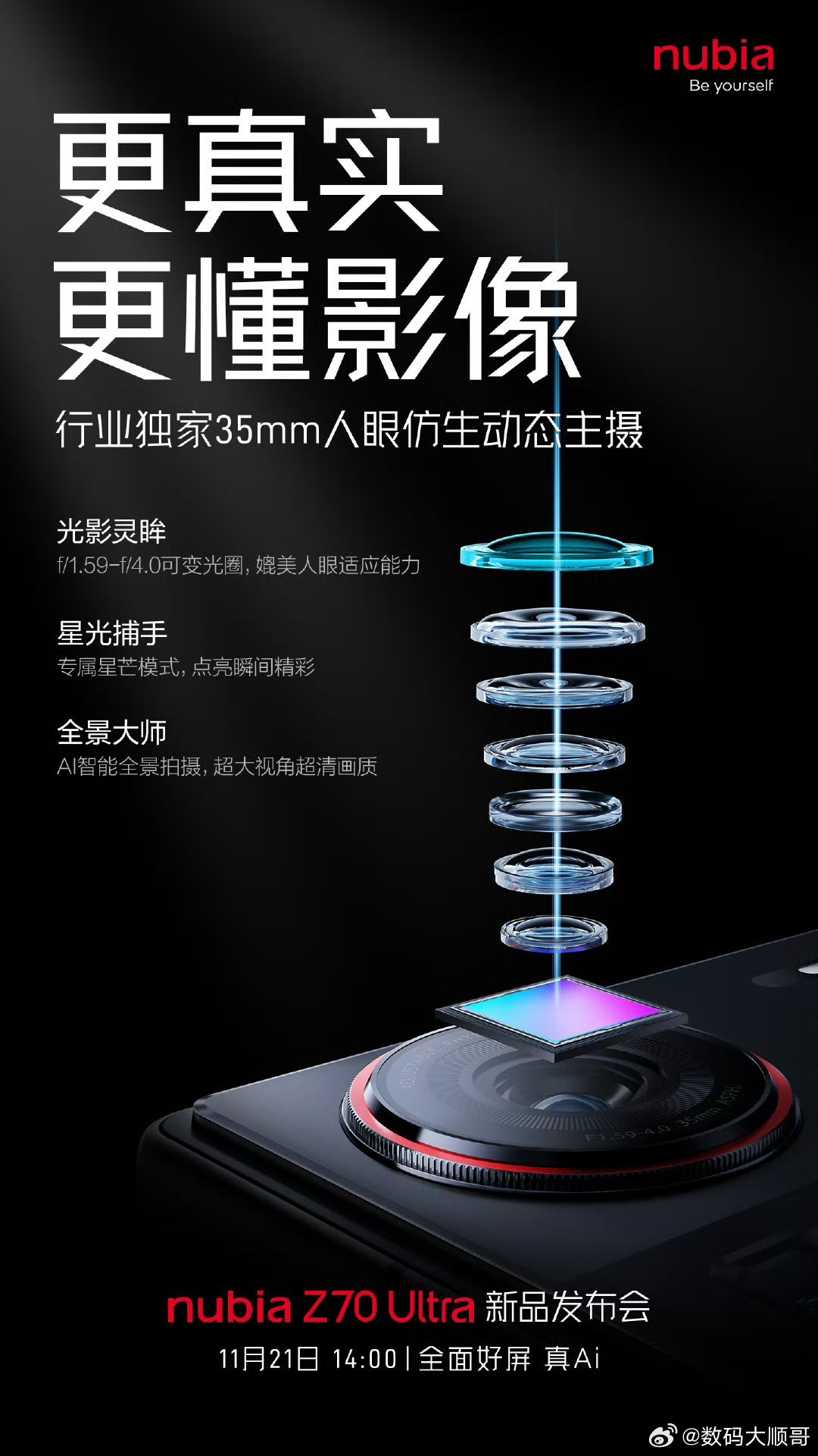 努比亚 Z70 Ultra影像预热 35mm 仿生镜头,可变光圈