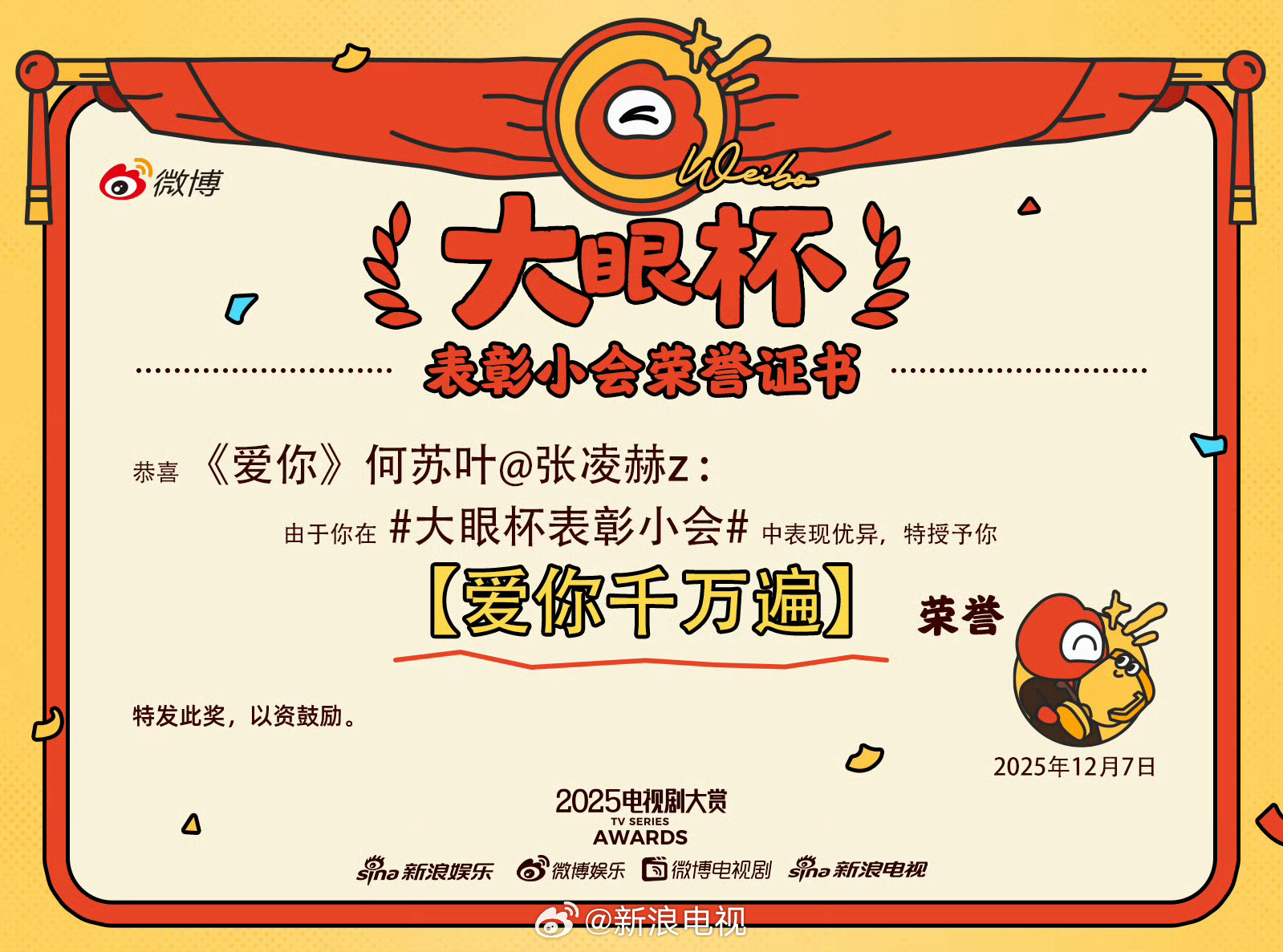 恭喜何苏叶@张凌赫z 喜提“爱你千万遍”荣誉