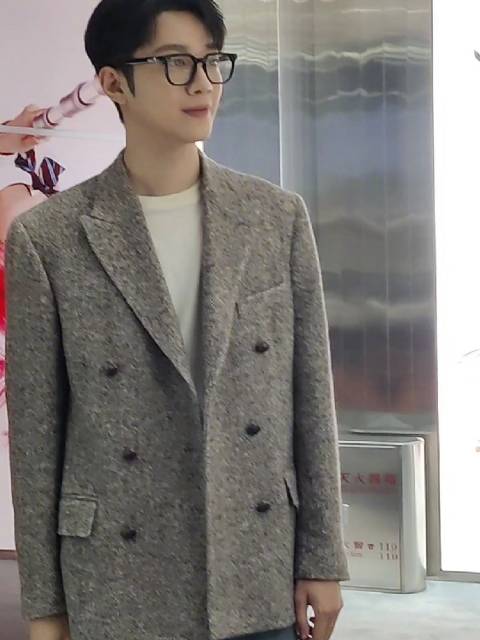 今日出席北京品牌活动,黑框眼镜搭配深灰大衣……