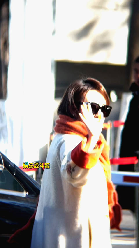 马丽羊绒大衣搭橘色围巾黑色墨镜贵气十足…