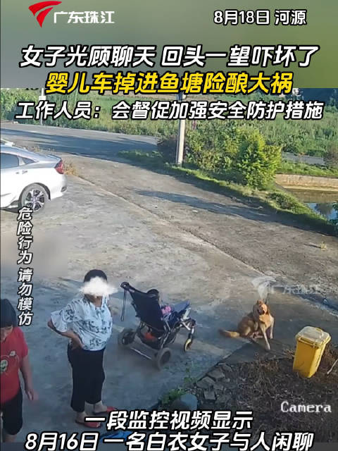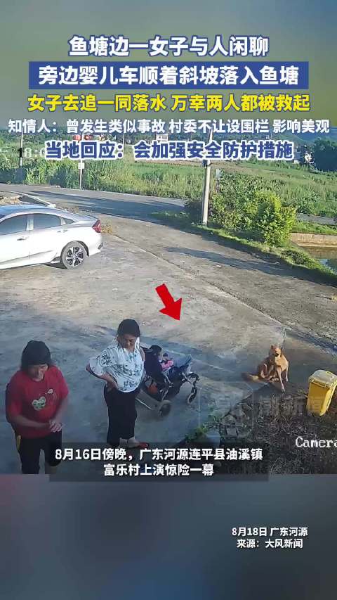 女子聊天未察婴儿车滑落鱼塘,母子落水获救后将加强防护
