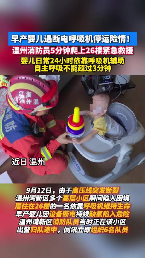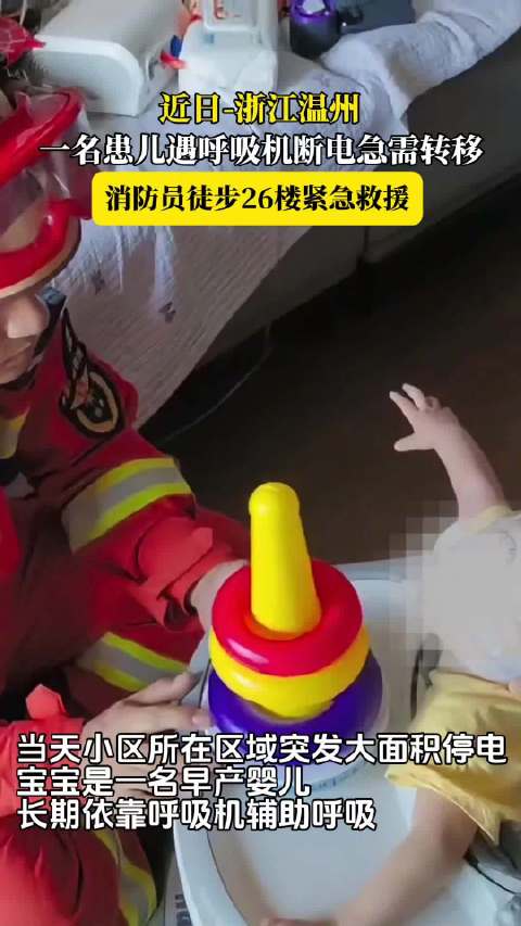 温州消防员5分钟爬26楼救助缺氧婴儿