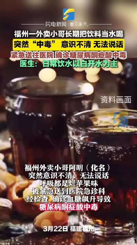 福州一外卖小哥长期把饮料当水喝 突然“中毒” 紧急送往医院 确诊糖尿病酮症酸中毒