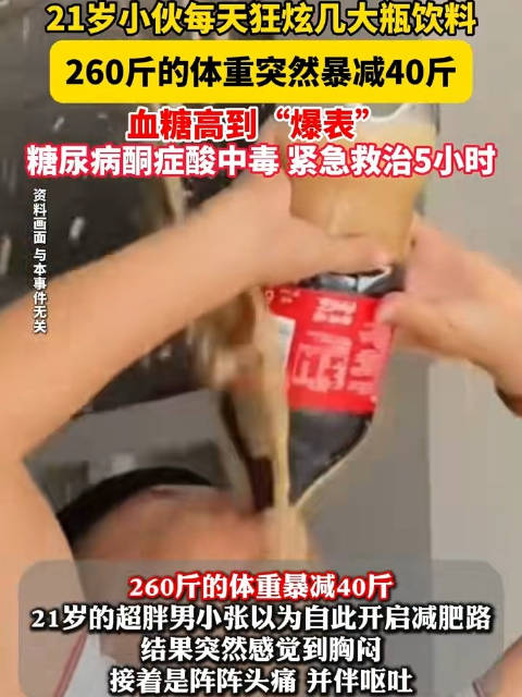 260斤小伙狂炫饮料瘦40斤中毒进急诊,确诊为糖尿病酮症酸中毒