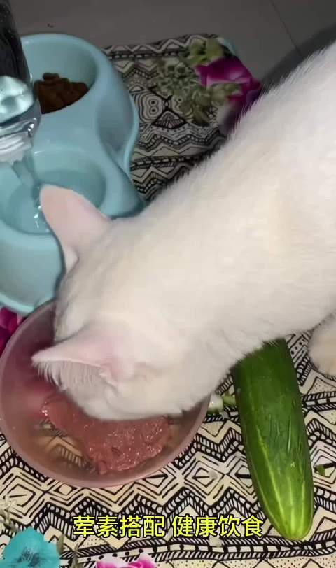 猫咪也懂得荤素搭配,还懂得要多吃菜,别人家的猫懂事又听话!