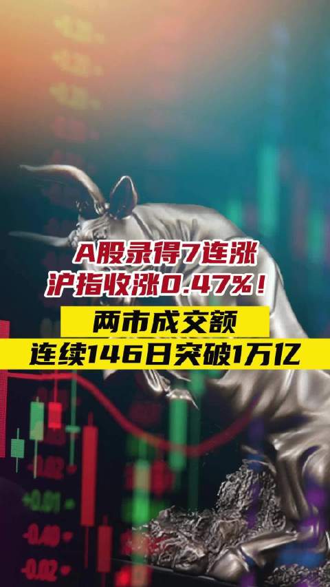 A股录得7连涨,沪指收涨0.47%!两市成交额连续146日突破1万亿