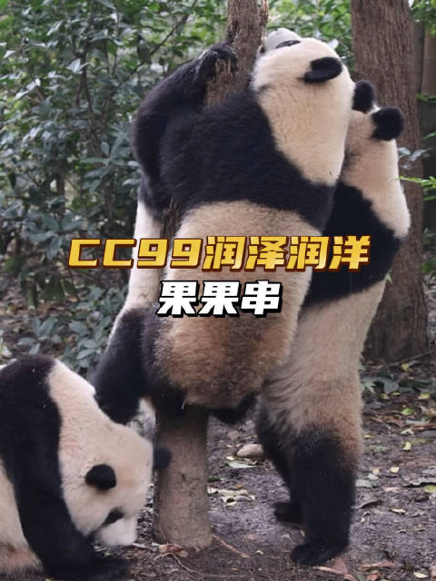 大熊猫九九CC树上挂果引争抢,小泽9哥踩C哥脑袋引嘤嘤叫